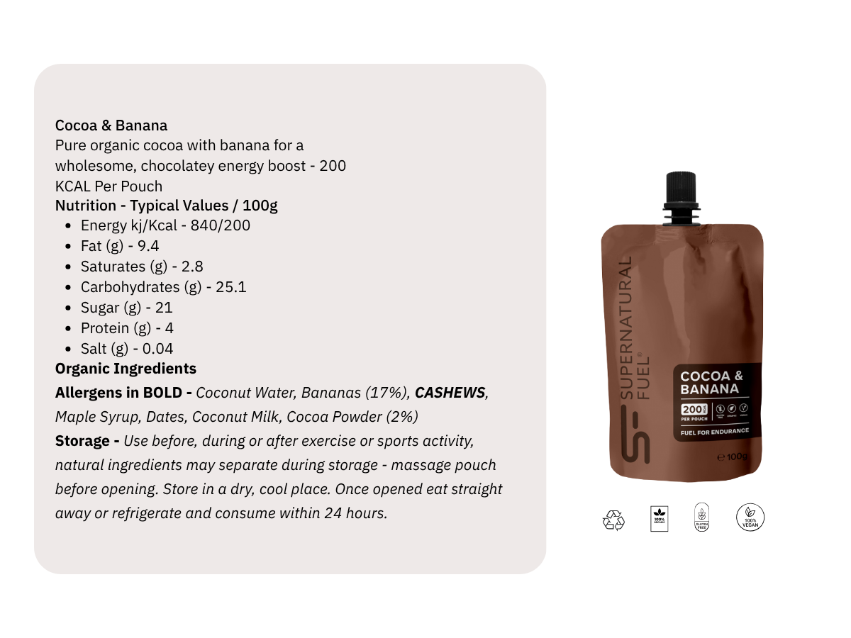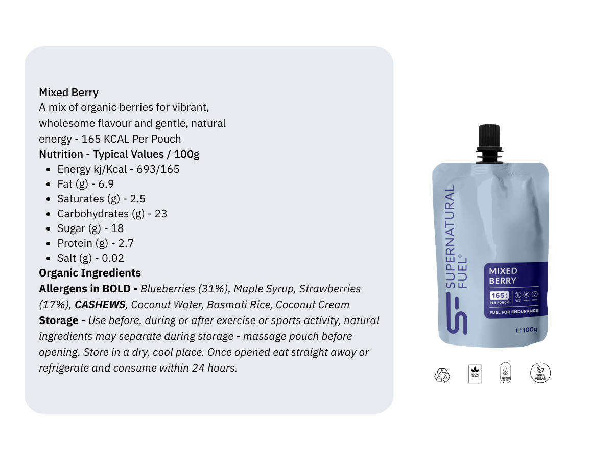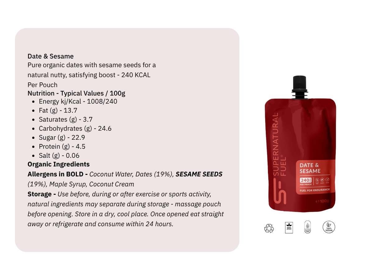 Whatever your sport and whatever your level, Supernatural Fuel helps you stay at your best with real food made for active bodies. Perfect for half-time refuelling, mid-race energy, or recharging between heats, each blend is made from organic fruits, nuts, seeds, and grains, nothing artificial, just simple, natural ingredients for steady, sustained energy.